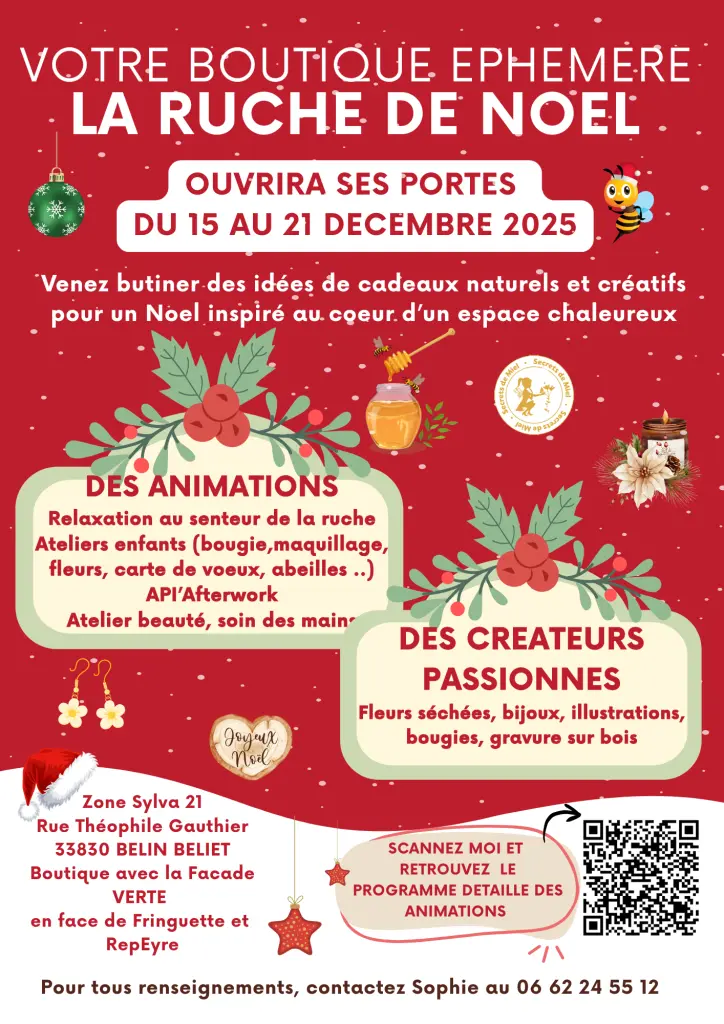 Du 15 au 21 décembre, découvrez les produits autour de la ruche et le savoir-faire de Sophie Brenaut accompagnée par plusieurs créatrices et artisans locaux.