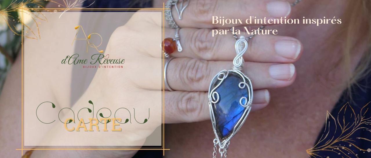 Previous Next Ajouter à mes favoris Partager sur Notre Histoire On vous propose d'Ame Rêveuse, Bijoux d'intention en pierres naturelles à SallesChez d’Âme Rêveuse les bijoux en pierres naturelles se transforment en éclats de rêves pour apporter une touche de magie à votre journée. Plongez dans un univers envoutant qui fusionne Nature et poésie pour donner vie à des créations artisanales uniques qui racontent votre histoire et portent vos intentions positives.Grâce à une technique de bijouterie ancestrale, chaque bijou en pierre et arbre de vie incarne une élégance raffinée. Les talismans portent en eux des intentions positives, conçus pour vous accompagner. Je vous propose des créations uniques, patiemment travaillées, de l’emblématique arbre de vie au pendentif talisman, chaque bijou est conçu avec une attention particulière et orné de pierres aux vertus bienfaisantes. Chaque bijou est créé pour vous accompagner au quotidien, en apportant une touche de beauté, de sérénité et d’énergie positive. Vous pouvez trouver les retrouver directement sur mon site internet d'Ame Rêveuse et venir les récupérer à l'atelier sur rendez-vous. Vous me trouverez sur des salons professionnels, dans certaines boutiques d'artisanat... Je fais aussi partie d'une boutique collective d'artisans d'art : La Maison des Créateurs à Andernos les Bains (222 Bd de la République, 33510 Andernos-les-Bains). Demande de contact × Nom Prénom Mail Téléphone Message Envoyer ma demande